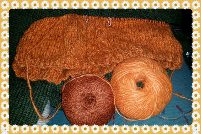 Kommet litt igang. Garnet er ujevnt spunnet, og det gir en fin effekt synes jeg :-) |